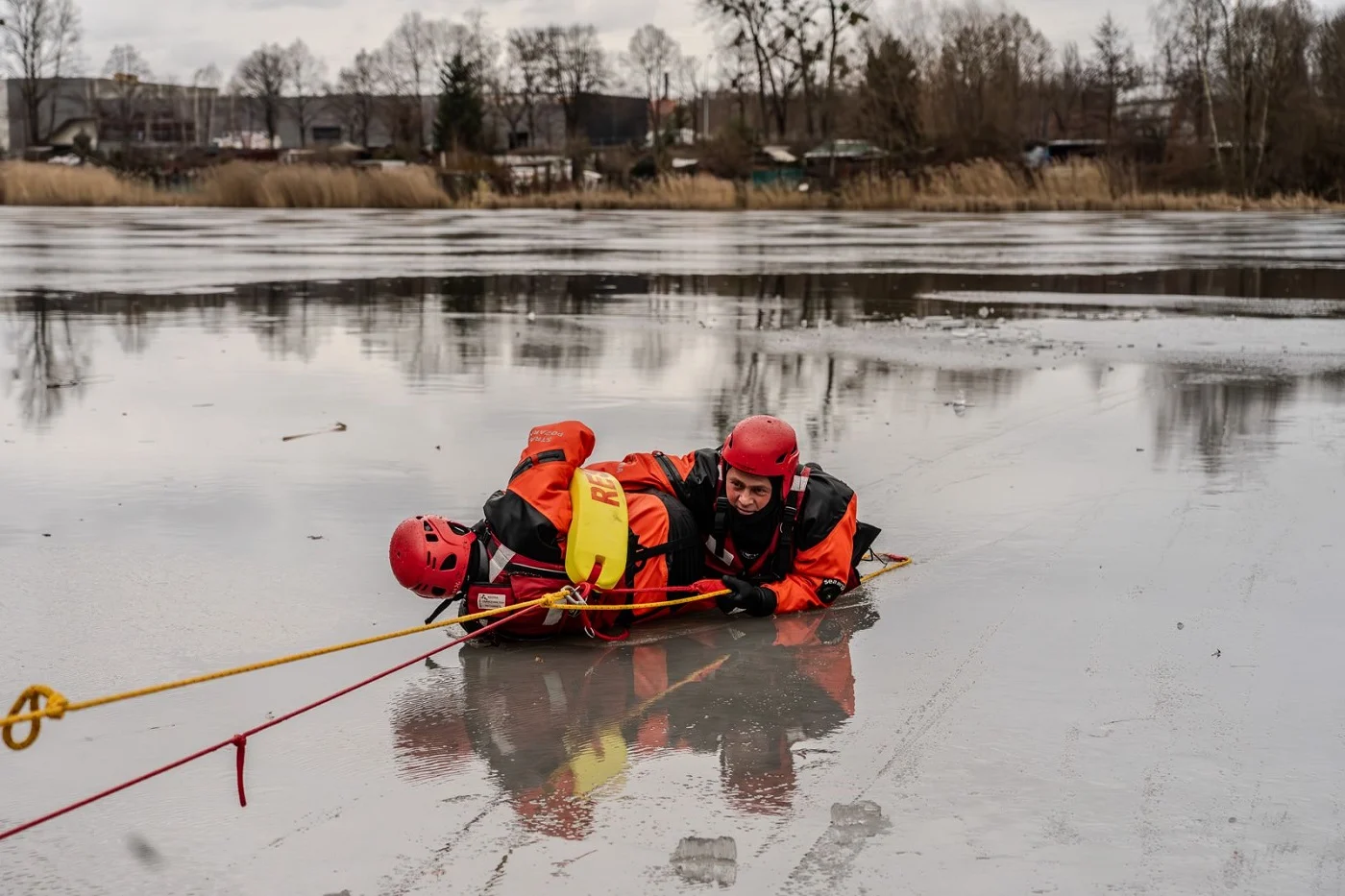 - Pamiętaj! Najważniejsze jest własne bezpieczeństwo. Jeśli lód załamał się pod osobą poszkodowaną, może załamać się również pod Tobą. Dlatego tak ważne jest wezwanie pomocy profesjonalistów. Ratownik bezodpowiedniego zabezpieczenia może przebywać w zimnej wodzie krótko. Po 3. minutach dochodzi do wyziębienia organizmu.