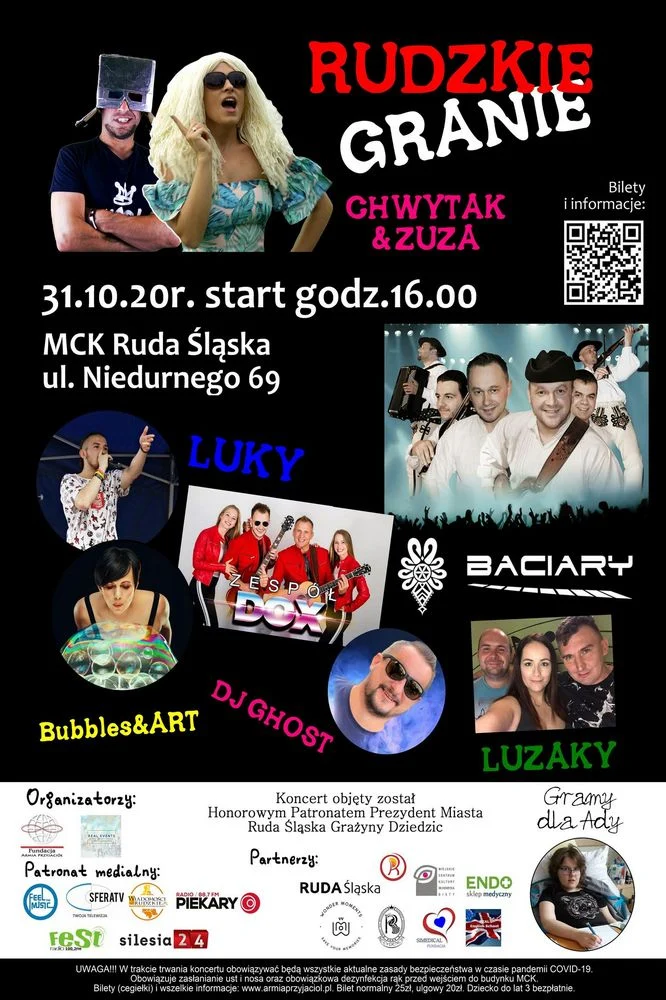 Koncert odbędzie się w Miejskim Centrum Kultury im. H. Bisty w Rudzie Śląskiej – Nowym Bytomiu, Wystąpią w nim artyści polskiej sceny muzycznej i artystycznej: Luzaky, Luky, Bubbles & Art. (artystyczny pokaz baniek)., Chwytak & Zuza, Zespół DOX, Ghost, oraz Baciary.