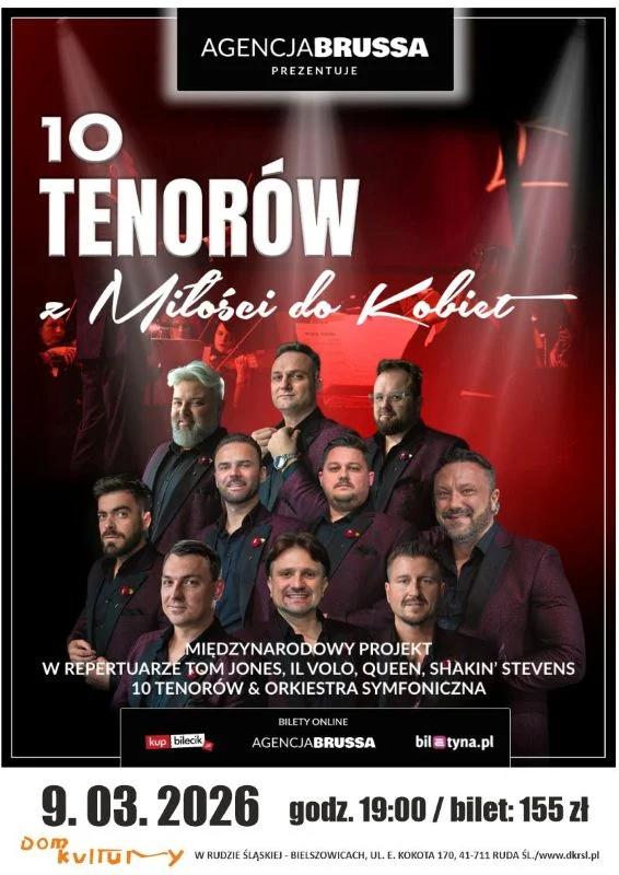 Z okazji Dnia Kobiet organizatorzy zapraszają na niezwykły, pełen emocji i muzycznej elegancji wieczór. 10 Tenorów powraca z nowym, romantycznym i zmysłowym show stworzonym specjalnie z myślą o Kobietach – o ich sile, wrażliwości, pięknie i roli, jaką odgrywają w naszym życiu.