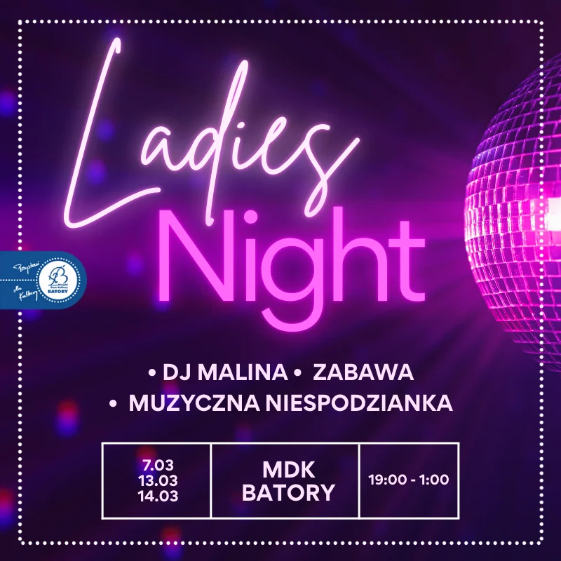 Z okazji Święta Kobiet organizatorzy zapraszają Was do szalonej tanecznej zabawy podczas Ladies Night, gdzie czeka na Was:
