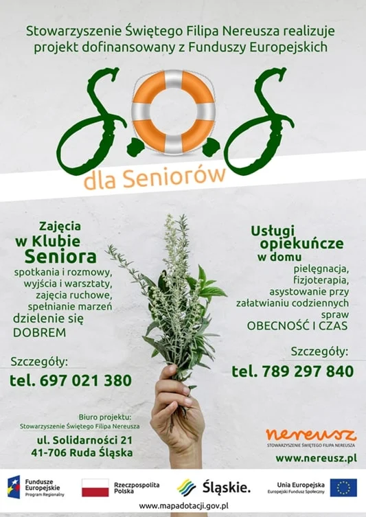 Projekt „SOS dla seniorów z Rudy Śląskiej” realizowany jest w ramach Europejskiego Funduszu Społecznego. Korzystanie z wszelkich usług w ramach projektu jest bezpłatne. Szczegółowe informacje o spotkaniach Klubu Seniora oraz Kawiarence dla Seniorów można uzyskać pod numerem telefonu: 697 021 380, a o usługach opiekuńczych pod numerem telefonu 789 297 840.