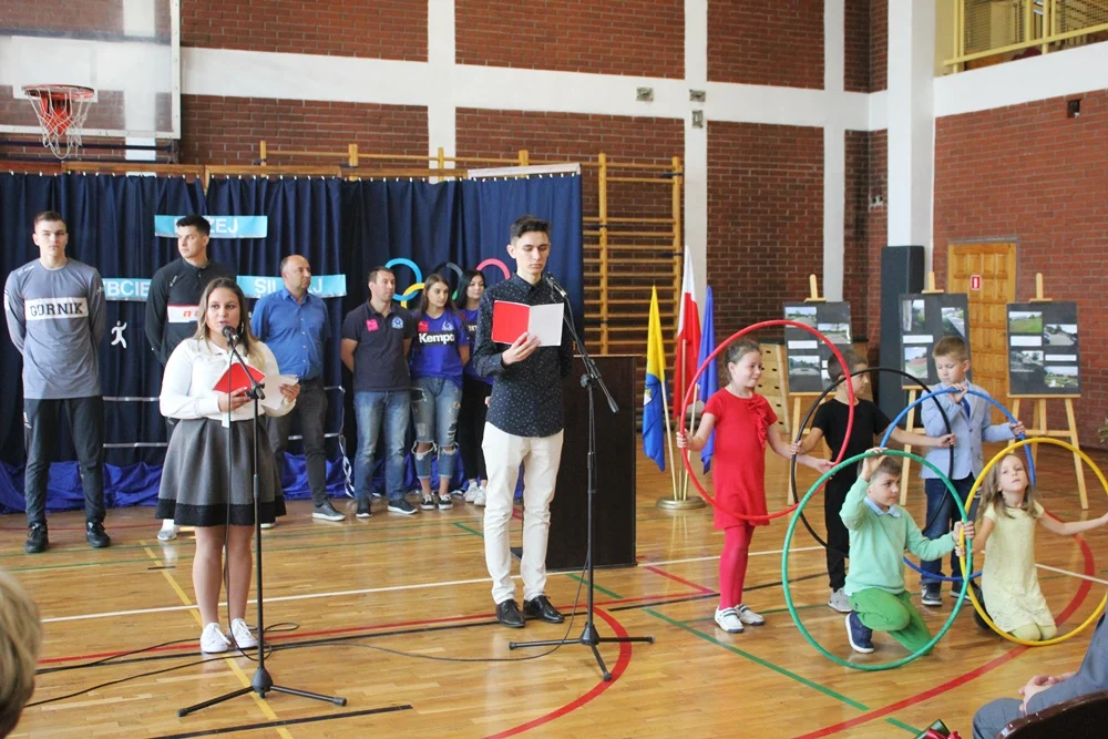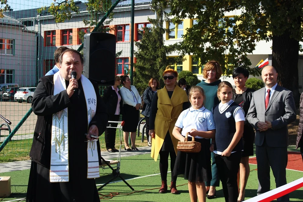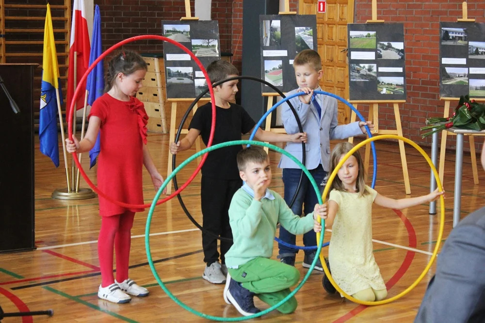 Podczas uroczystości, która odbyła się na sali gimnastycznej oraz nowych boiskach, nie zabrakło występów artystycznych w wykonaniu dzieci i młodzieży oraz wystąpień zaproszonych gości. Uczniowie przekazali dyrekcji