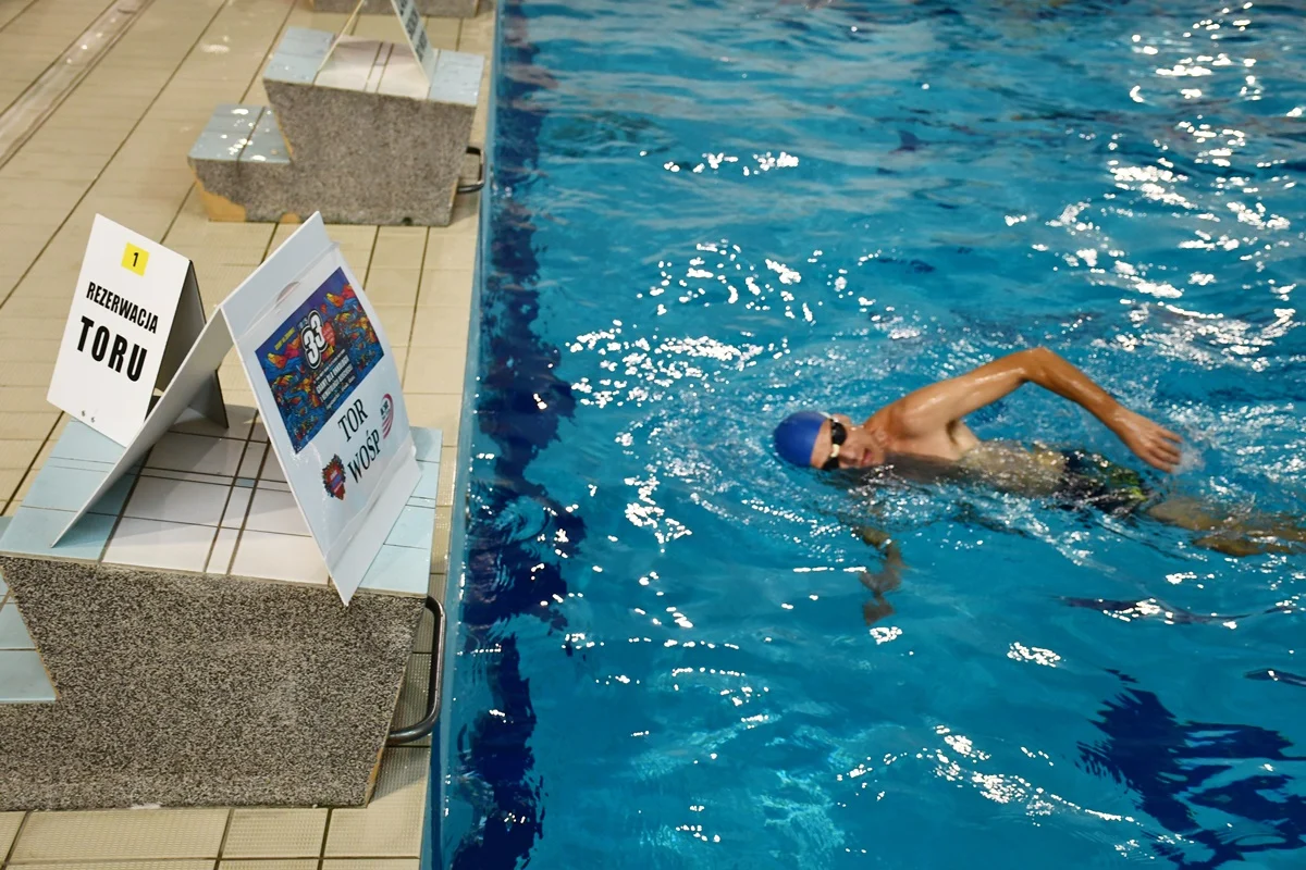 – Specjalnie dzisiaj przyszłam na basen, by wesprzeć Wielką Orkiestrę Świątecznej Pomocy. Zachęcam wszystkich, bez względu na wiek, by ruszyć się i zadbać o siebie. Każdy przepłynięty metr ma znaczenie – mówiła pani Genowefa, która od lat odnosi sukcesy na ogólnopolskich zawodach pływackich.