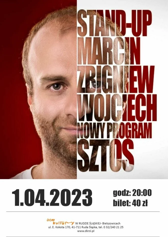 Marcin Zbigniew Wojciech, 1 kwietnia 2023 br., g. 20:00, Dom Kultury w Rudzie Śląskiej – Bielszowice