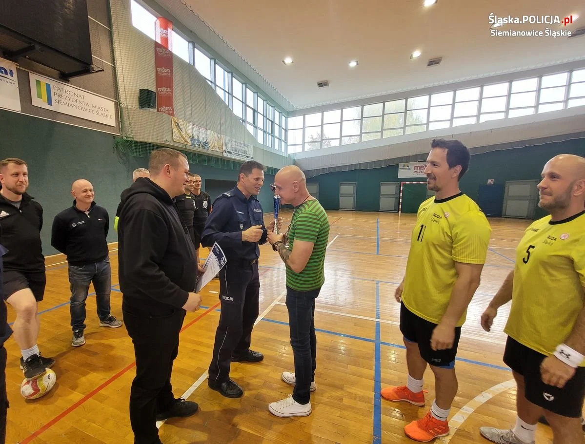 Po dwuletniej przerwie związanej z pandemią na boisko hali sportowej „Michał” w Siemianowicach Śląskich wróciło jedno z ważniejszych policyjnych wydarzeń sportowych z dyscypliny halowej piłki nożnej. Przez 3 dni reprezentacje 32 jednostek Policji walczyły o tytuł najlepszej drużyny. Gra była na wysokim poziomie, niekiedy górę brały emocje, ale zawsze walka toczyła się w duchu fair play. Zdobywcą I miejsca w Wojewódzkich Mistrzostwach Policji w Halowej Piłce Nożnej była reprezentacja Komendy Miejskiej Policji z Gliwic, która pokonała dzielnie walczącą reprezentację rybnickich policjantów. W walce o 3. miejsce lepszą okazała się reprezentacja naszej komendy, która z wynikiem 3:1 pokonała drużynę z Tychów. Rudzcy stróże prawa nie obronili tytułu mistrzowskiego sprzed dwóch lat, ale z Siemianowic Śląskich wrócili z pucharem oraz statuetką dla najlepszego strzelca mistrzostw, która trafiła do rąk zawodnika Pawła Mazurka.