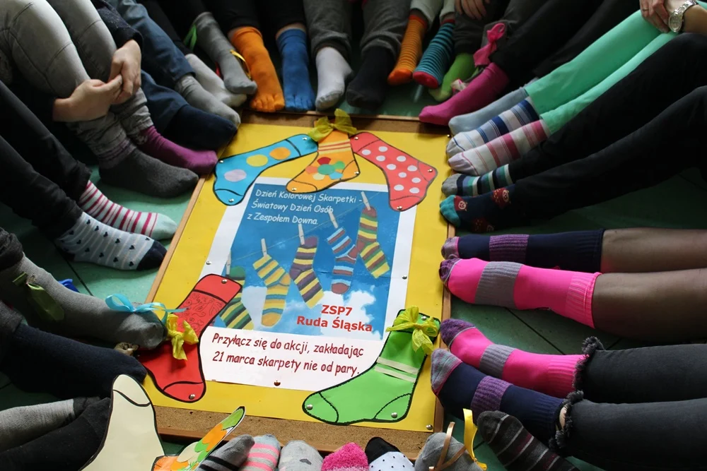 Kolorowe skarpetki nie do pary to symbol niedopasowania społecznego i genotypowego z jakim borykają się osoby z Zespołem Downa. W tym dniu młodzież założyła skarpetki nie do pary, okazując solidarność z osobami dotkniętymi trisomią w obrębie 21. pary chromosomów.