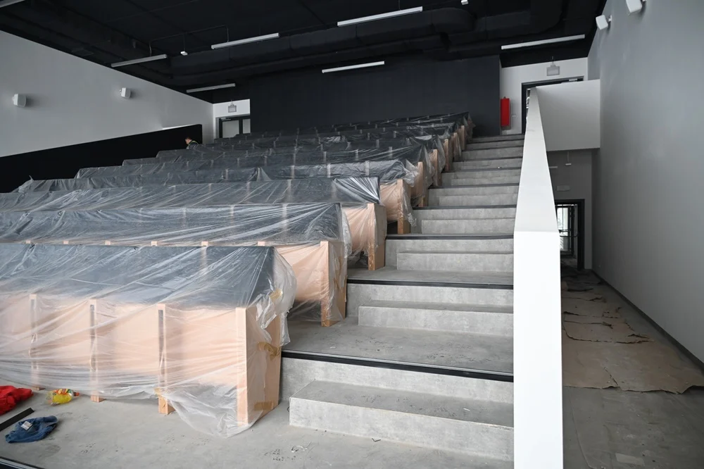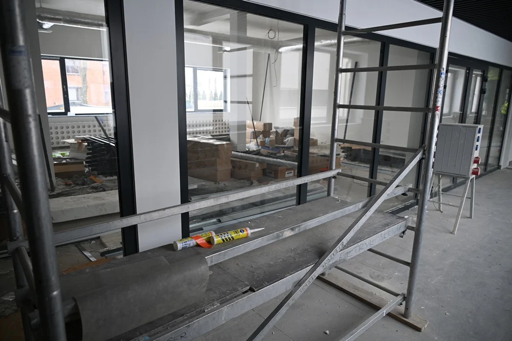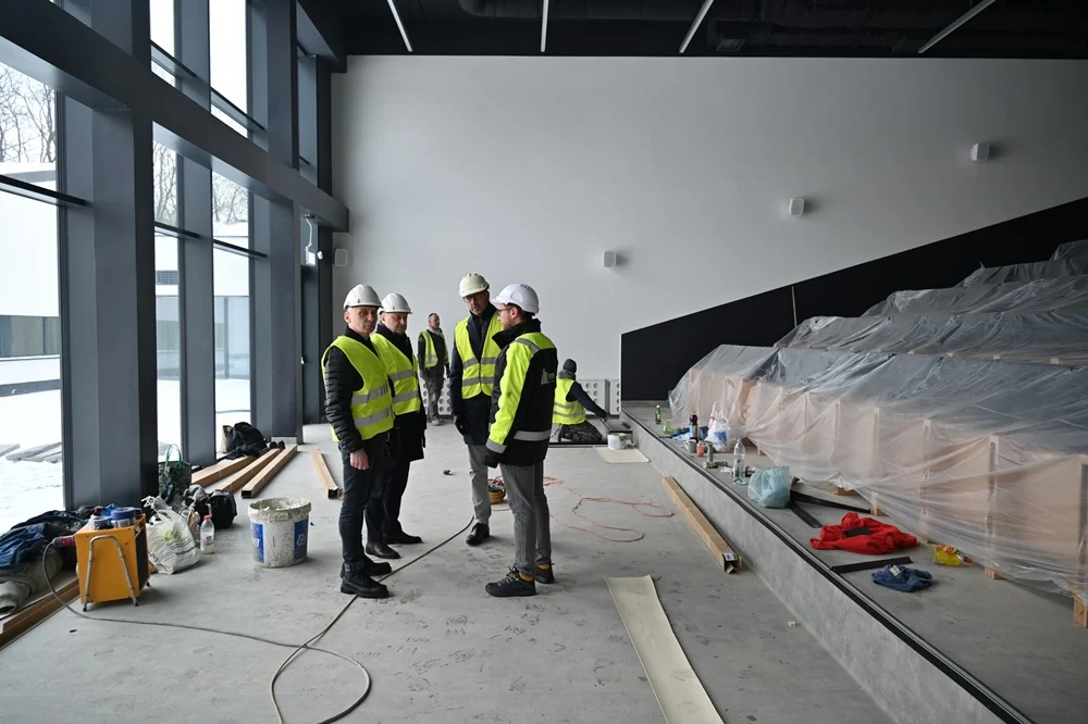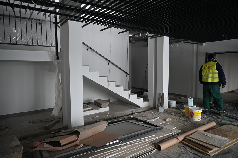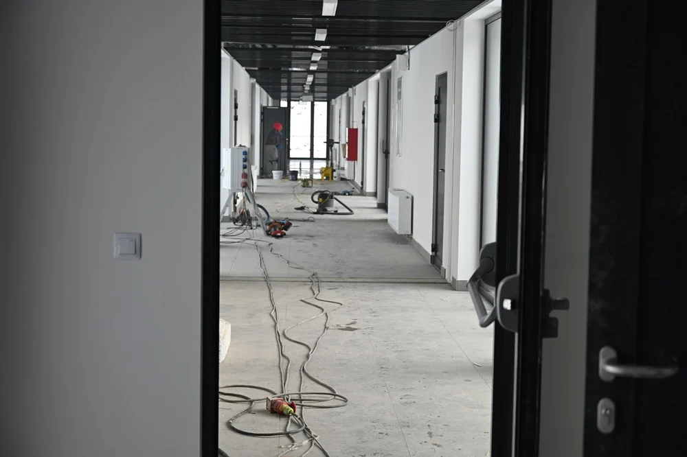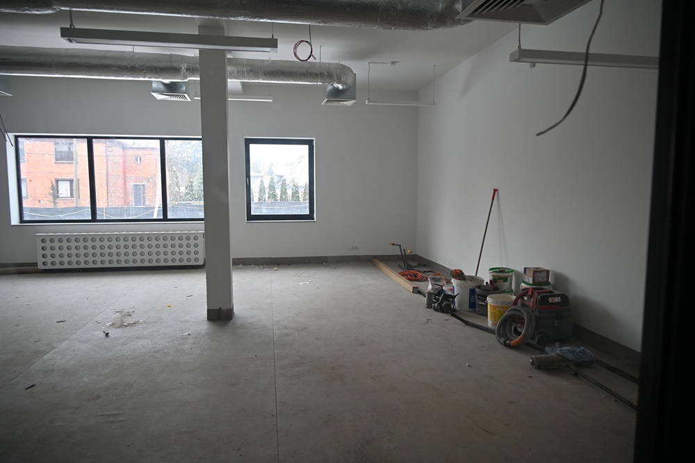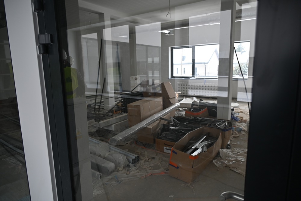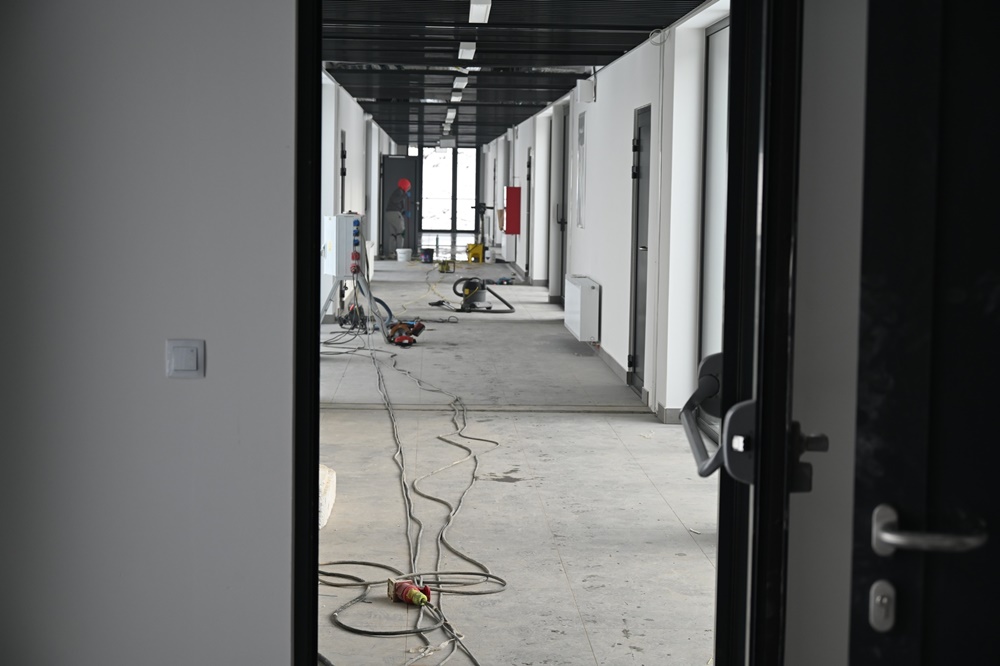 Pomimo trudności budowa nowej siedziby powoli zmierza do końca. Obecnie trwają prace wykończeniowe wewnątrz budynku, takie jak: montaż ażurowych sufitów podwieszanych, płytek, robione są poprawki malarskie, obróbki dylatacji, czy też montowanie detali wykończenia. Rozpoczęto również rozruch instalacji centralnego ogrzewania i ciepłej wody, a w dalszej kolejności zaplanowano rozruch i nastawy wszystkich urządzeń elektrycznych, w szczególności związanych z zapewnieniem właściwej pracy wentylacji mechanicznej. Uruchomienie docelowego zasilania elektroenergetycznego, powinno nastąpić do 19 stycznia. Równocześnie trwają prace związane z zagospodarowaniem terenu – chodzi tu o drogi pożarowe, miejsca parkingowe, czy też ogrodzenie, które częściowo wstrzymano z uwagi na warunki atmosferyczne.
