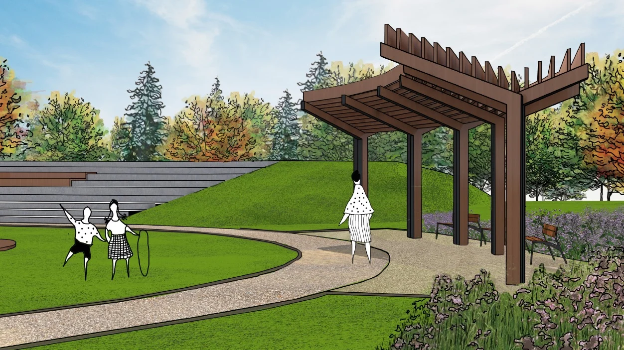 Rewitalizacja tego miejsca polegać będzie na nadaniu mu funkcji wypoczynkowej. Po części wyremontowane zostały już zniszczone betonowe stopnie amfiteatru. Dodatkowo pojawi się szereg elementów małej architektury, takiej jak: ławki, stoły piknikowe, stojaki rowerowe. Całość dopełni pergola oraz mały plac zabaw.