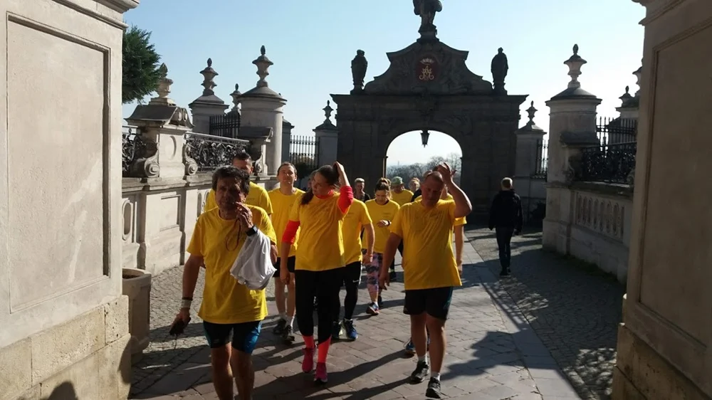 Przez całą drogę biegaczy wspierał jadący na rowerze Dawid Roger – który przejechał 95% całej drogi. Wspólnie grupa pokonała ostatni podbieg pod Jasną Górę ul. Barbary.