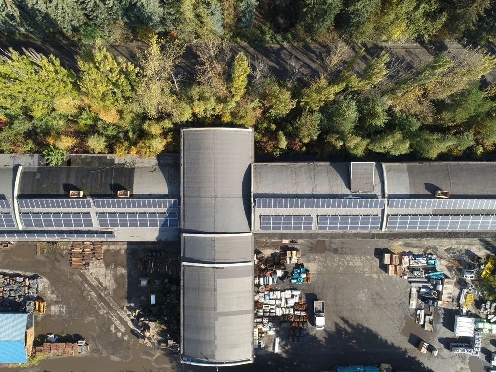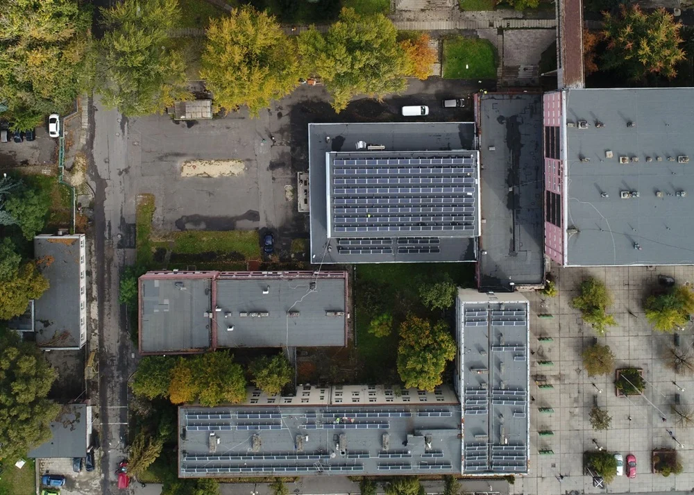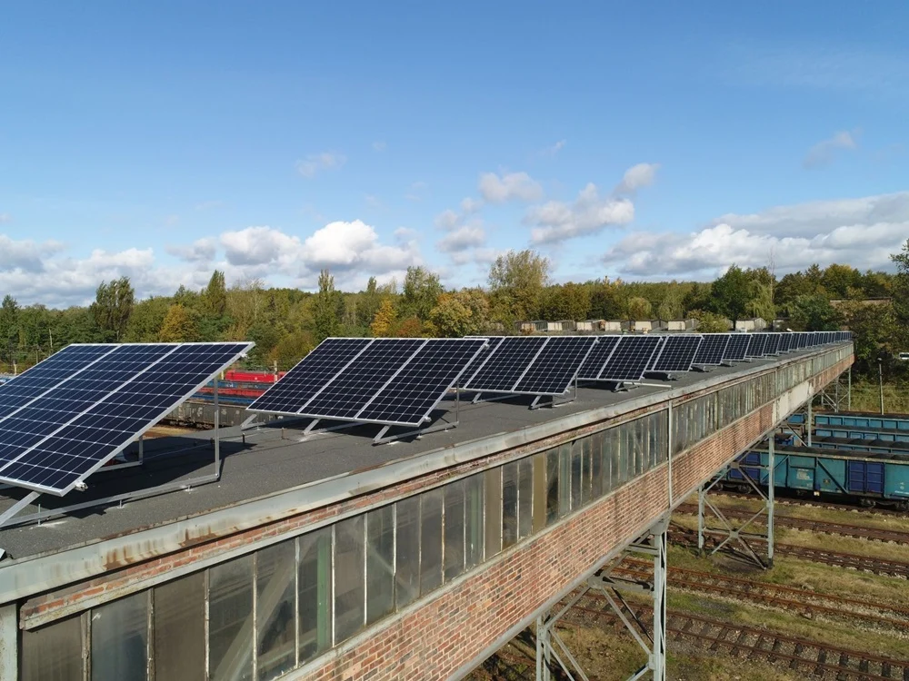 Panele są lekkie, ważą tylko 23 kg, przytwierdza się je i zabezpiecza betonowym balastem. Dlatego dachy w Halembie musiały przejść przed montażem kompletny przegląd. Wykryto słabsze miejsca konstrukcji, uzupełniono gdzie trzeba pokrycie z papy, wzmocniono powierzchnię – to uboczna, dodatkowa korzyść z inwestycji fotowoltaicznej.