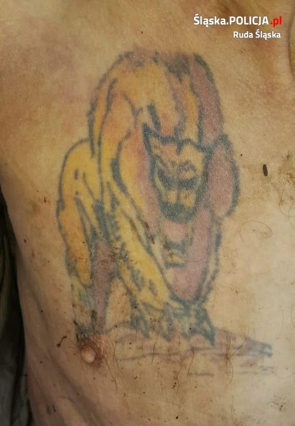 - Cechy szczególne odnalezionego mężczyzny: Znakiem szczególnym ujawnionym u odnalezionego mężczyzny jest kolorowy tatuaż na klatce piersiowej po prawej stronie przedstawiający lwa, na prawym ramieniu tatuaż tribal.