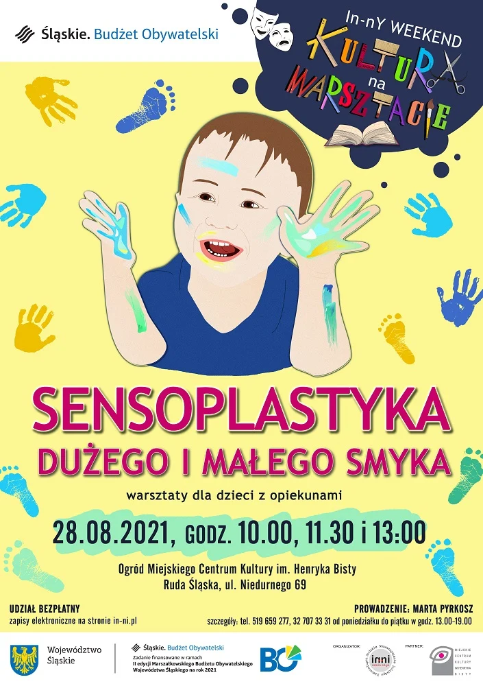 Zapisy tylko drogą elektroniczną od wtorku 17.08.2021 od godz. 8.00 za pomocą strony https://in-ni.pl/index.php/sensoplastyka. Liczba uczestników ograniczona, decyduje kolejność zgłoszeń. Dodatkowych informacji udzielamy od poniedziałku do piątku w godzinach od 13.00 do 19.00 pod numerem telefonu 519 659 277.