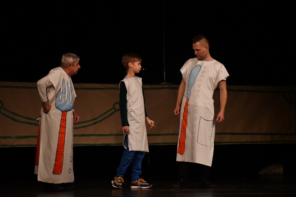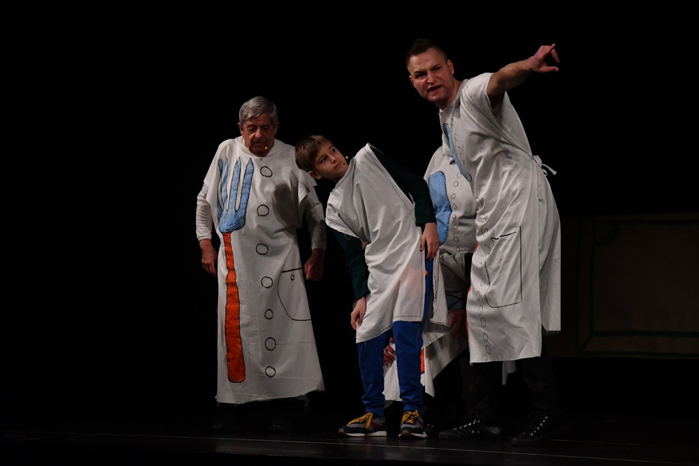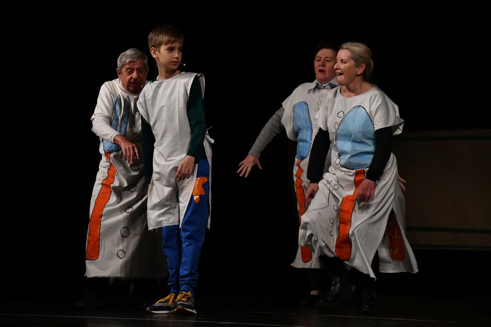 Na scenie wystąpiło 16 aktorów w przedziale wiekowym od 9 do 77 lat.