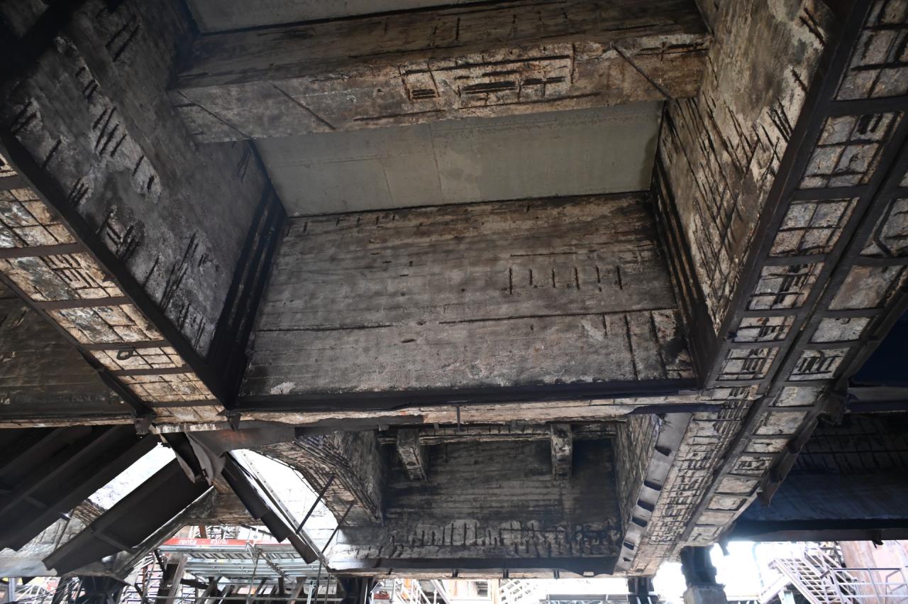 Obecnie kluczowym etapem jest naprawa i czyszczenie konstrukcji stalowej. Skorodowane elementy są wymieniane, a pozostałe są czyszczone i malowane. Nad tymi pracami czuwa specjalna komisja konserwatorska, która regularnie spotyka się na budowie, aby nadzorować dobór impregnatów, tak aby obiekt odzyskał swój dawny, oryginalny wygląd i charakter. Również komin przechodzi intensywne czyszczenie z użyciem specjalistycznych preparatów, co wkrótce przywróci mu dawny wygląd. Już teraz można zauważyć, że obiekt przesypowni zyskał nowy stropodach z zamontowanymi świetlikami, a także izolację przeciwwodną. Co więcej, rozpoczęto montaż stalowej konstrukcji nowego obiektu w przedniej części terenu, widocznej od strony ul. Piotra Niedurnego, która swoim nowoczesnym designem dopełni całości.
