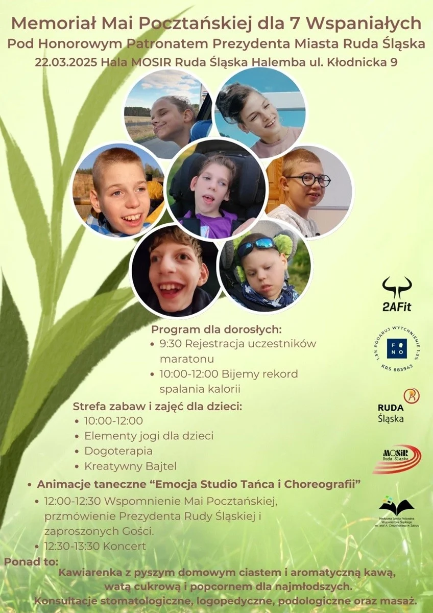 Również w sobotę w hali MOSiR w Halembie odbędzie się Memoriał Mai Pocztańskiej dla 7 wspaniałych – charytatywny maraton fitness potrwa od godz. 9:30 do 13:30. W programie maraton fitness, licytacje, koncerty oraz inne atrakcje, które połączą sport z charytatywnym działaniem.
