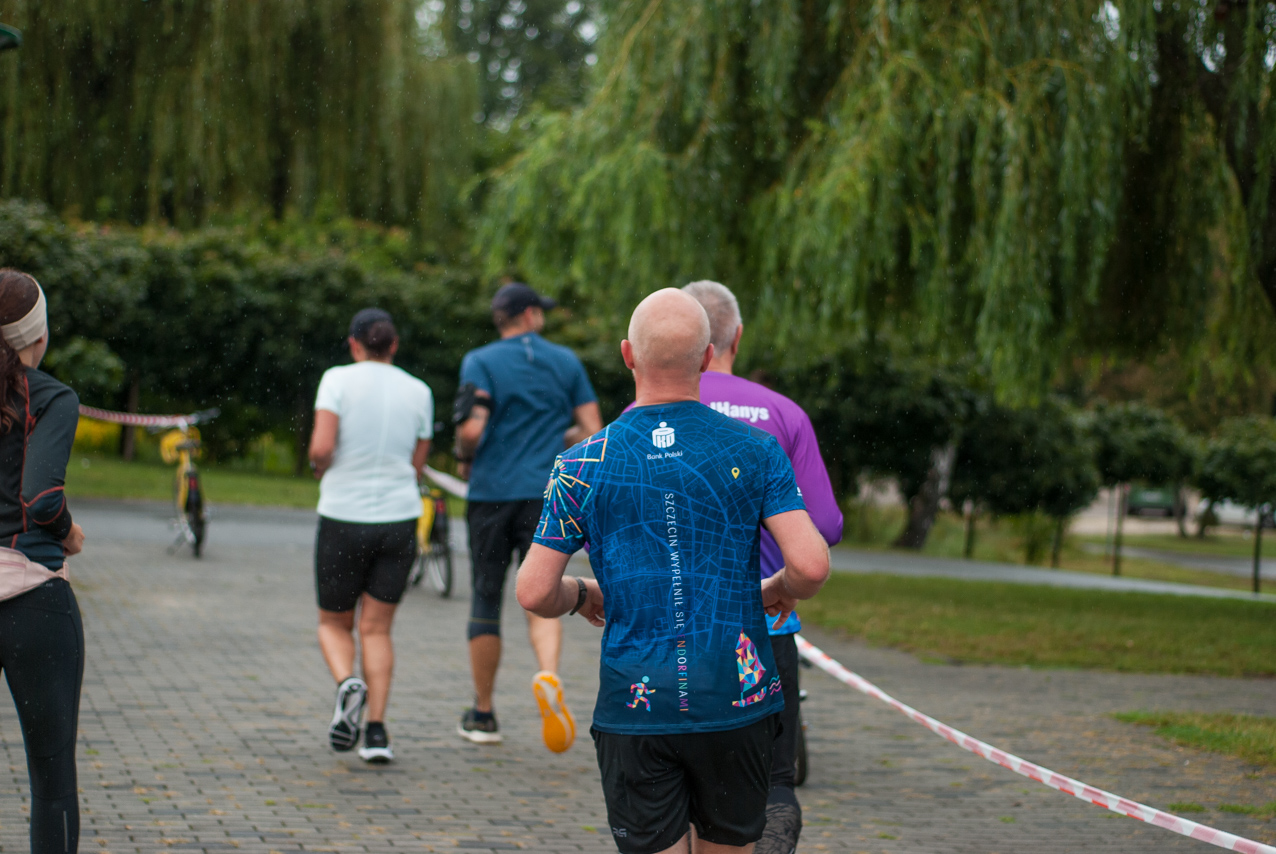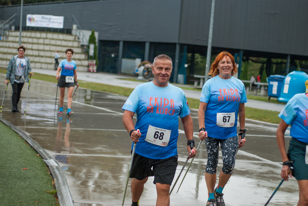 Choć z nieba niemal cały czas kropiło (raz mocniej, raz słabiej), na starcie pojawiło się około 150 uczestników (na 160 zapisanych). Około 9:25 kolorowy peleton biegaczy ruszył w trasę wokół Burloch Areny oraz pobliskiego parku. Niektórzy biegiem, inni truchtem, marszem, spacerem, z kijkami lub na wózku. I z uśmiechami na twarzy.