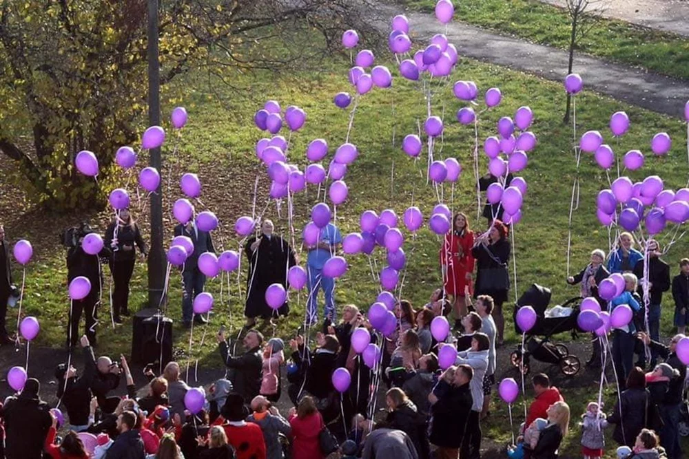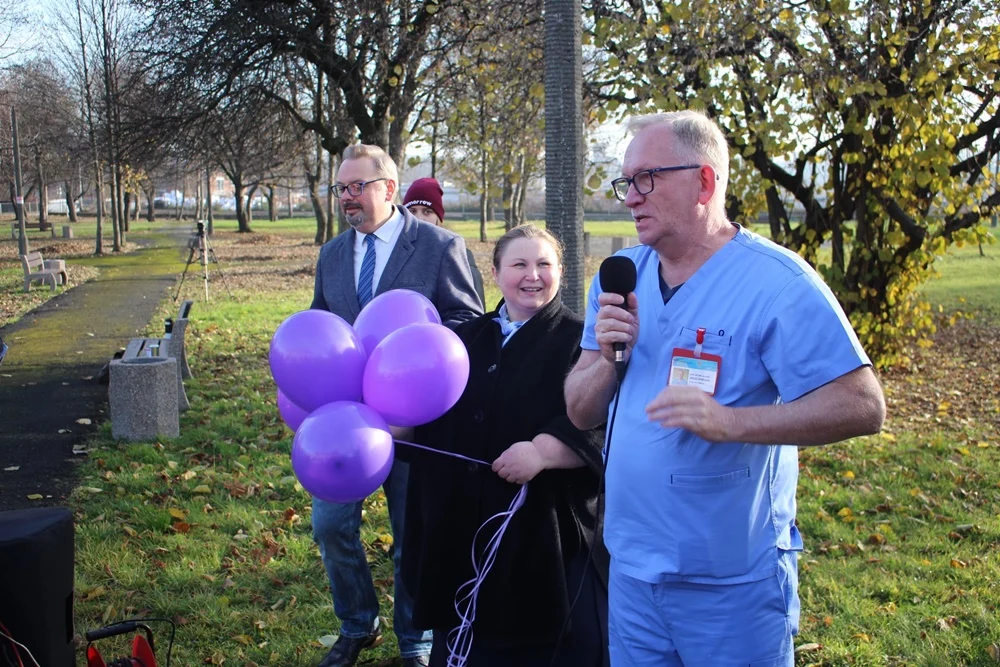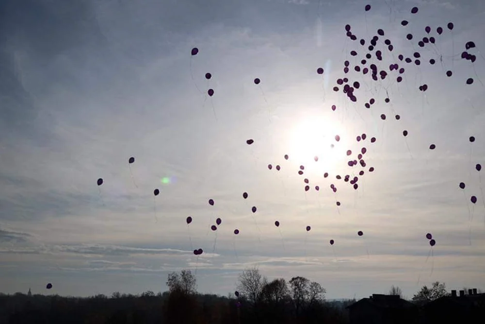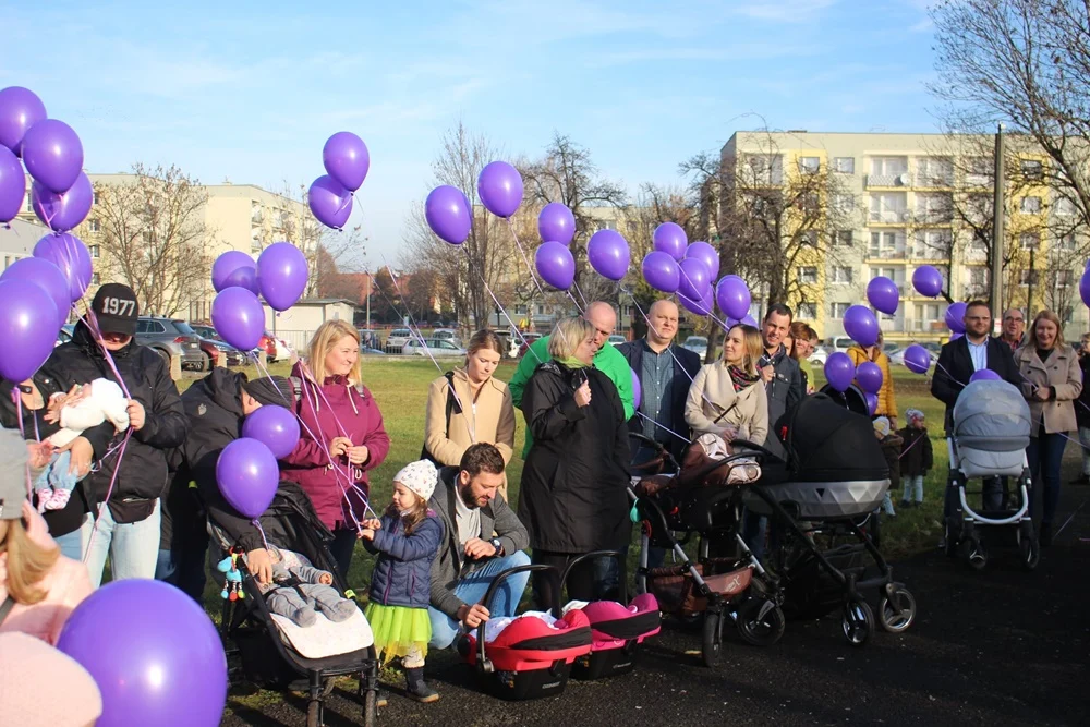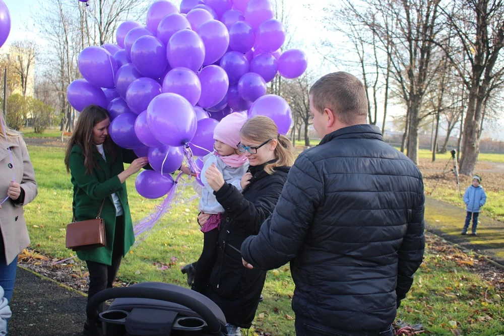Z okazji Dnia Wcześniaka przy rudzkim szpitalu wypuszczono w niebo 200 fioletowych balonów