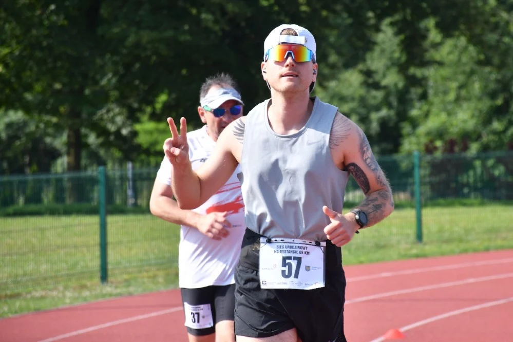 W sobotę, (8 czerwca) o godzinie 9.00 rozpoczął się bieg jubileuszowy na stadionie lekkoatletycznym przy ul. Czarnoleśnej. Uczestnicy mieli do pokonania dystans 65 km na bieżni tartanowej po pierwszym torze (długość okrążenia 400 m) oraz czwartym torze (długość okrążenia 423 m). Każdy uczestnik miał maksymalnie 7 godzin na przebiegnięcie dystansu.