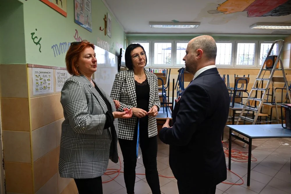 Zalaną placówkę odwiedził prezydent Michał Pierończyk – zapewnia, że wraz z pracownikami szkoły miasto zrobi wszystko, aby dzieci jak najszybciej mogły powrócić w szkolne mury.