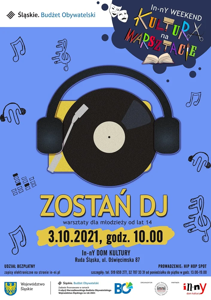 Rudzkie Stowarzyszenie Inicjatyw Niebanalnych In-nI zaprasza do bezpłatnego udziału w warsztatach „ZOSTAŃ DJ”, które odbywają się w ramach II edycji Marszałkowskiego Budżetu Obywatelskiego.