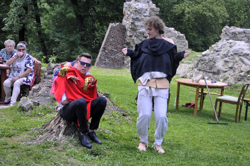 W ruinach zamku na Rudzie odbyło się dzisiaj improwizowane przedstawienie, które z przymrużeniem oka i z niezwykłym dowcipem opowiadało historię wielkiego majątku Karola Goduli.