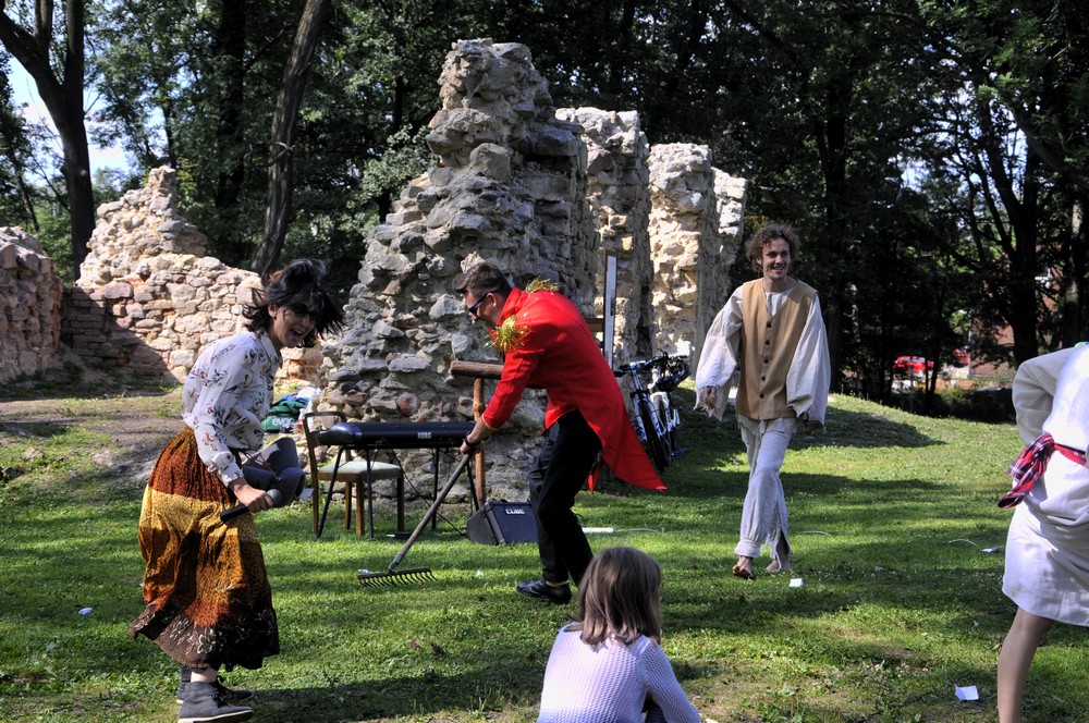 To przezabawne przedstawienie to efekt współpracy zespołu Music Mahal oraz Fabryki Kultury, a wśród rudzkich ruin wystąpili: Anna Leśniak, Anna Stępień, Tomasz Madej, Mateusz Trembaczowski oraz odpowiedzialna za warstwę muzyczno-dźwiękową Barbara Kozaczkiewicz. Nie obyło się również bez udziału publiczności, która na różne sposoby była angażowana w opowiadaną historię – czy to przez wymyślanie niektórych dialogów, czy też przez autentyczny, aktorski udział na trawiastej scenie.