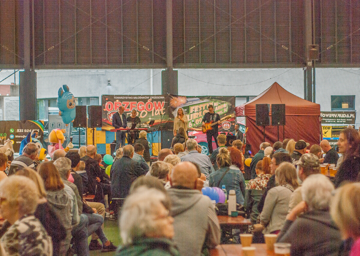 Jak wyglądał rozkład dnia? Ci którzy byli na festynie wcześniej, mieli okazję skorzystać z większej ilości atrakcji. Od godziny 14:00, gdy zaczynało się rozpogadzać, zorganizowano m.in. serię konkurencji sportowo- rekreacyjnych dla dzieci i całych rodzin, rywalizacja na rowerkach, malowanie twarzy i warkoczyki i konkursy wiedzy ogólnej oraz skupionej wokół Orzegowa (sporo można było się dowiedzieć z plansz historycznych rozwieszonych w hali).