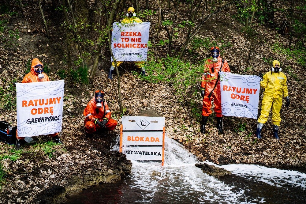 We wtorek przed południem 25 kwietnia 2023 r. grupa aktywistów Greenpeace zatamowała wylot kolektora wód kopalnianych odprowadzanych do cieku powierzchniowego do Kłodnicy w Rudzie Śląskiej - Halembie. W komunikacie prasowym wysłanym przez przedstawicieli organizacji możemy przeczytać, że "jest to odpowiedź na brak działań Ministerstwa Klimatu i Środowiska, które uchroniłyby Odrę przed ponowną katastrofą, jaka wydarzyła się w zeszłym roku."