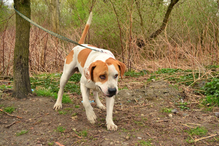 Nemo to około 5 letni psiak, najprawdopodobniej mix buldoga amerykańskiego. To duży, silny i bardzo energiczny pies, który wymaga aktywnego opiekuna. Szybko nawiązuje kontakt z nowo poznanymi osobami, każdego wita rozmerdanym ogonem.