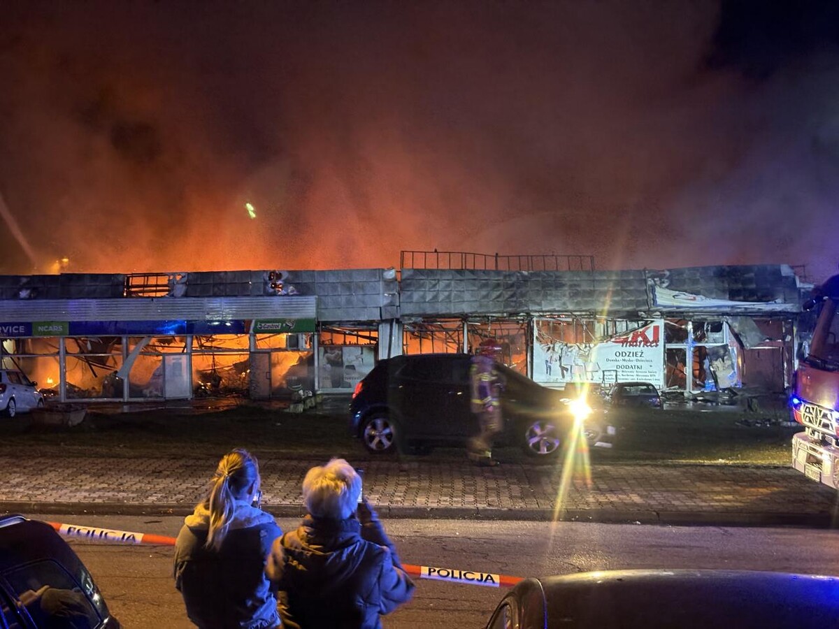 Budynek, w którym znajdują się takie sklepy jak Chiński Market, Biga czy Tekstylowo, stanął dziś w płomieniach, generując ogromne kłęby dymu widoczne są z odległych części miasta.