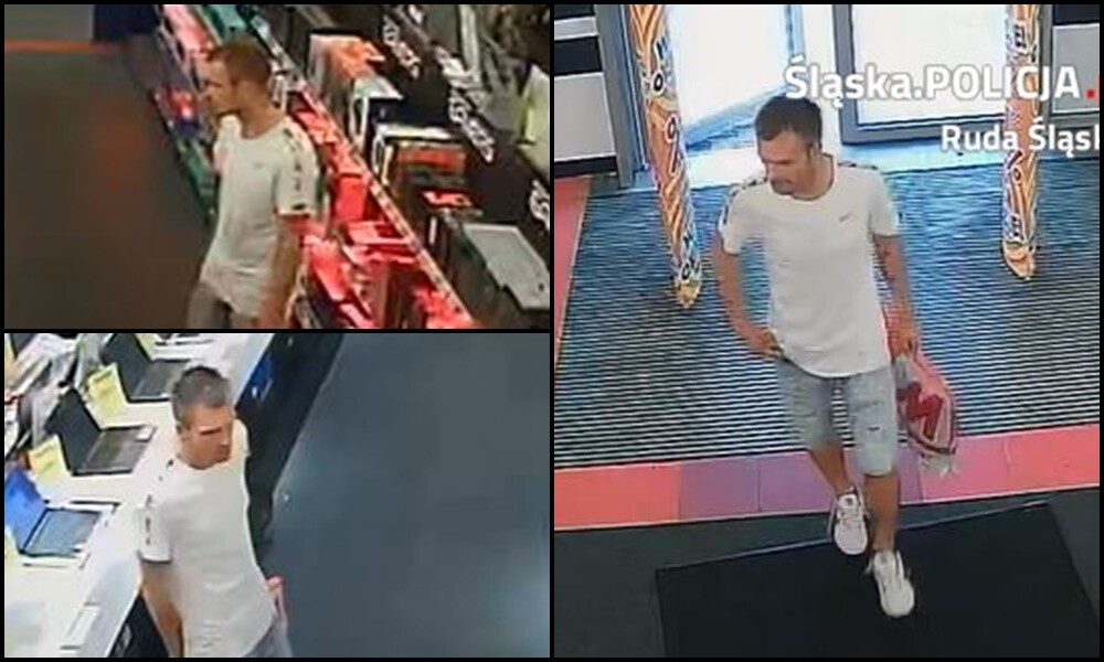 Kamera monitoringu zarejestrowała sprawcę kradzieży, być może ktoś rozpozna mężczyznę ze zdjęć. Osoby, które są w stanie pomóc w ustaleniu jego danych, prosimy o kontakt z Komisariatem I w Rudzie: