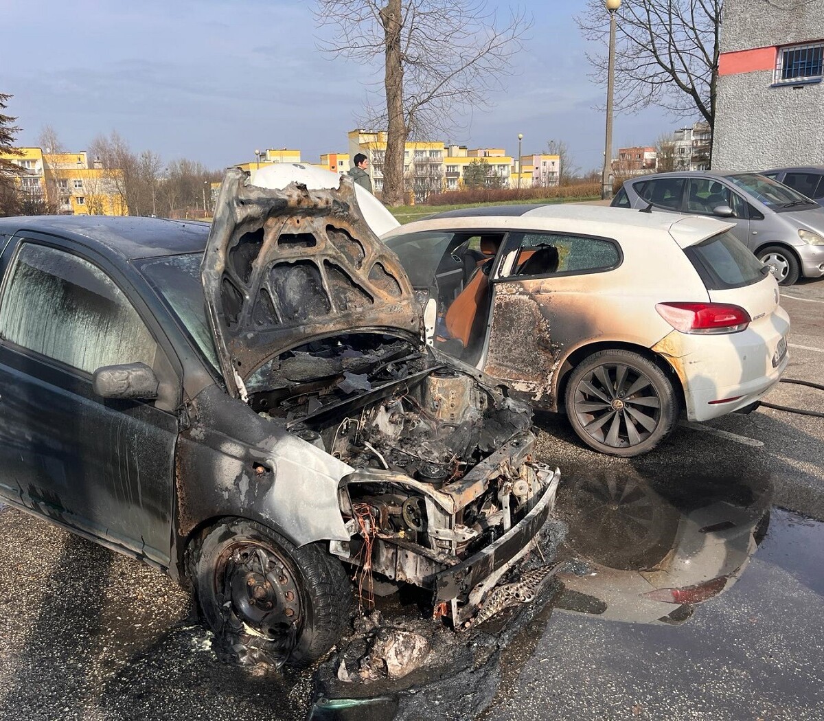 Dziś, 27 lutego ok. godz. 12:00 rudzcy strażacy dostali zgłoszenie o pożarze pojazdów przy ulicy Fojkisa 16 w dzielnicy Godula. Ogień z jednego płonącego pojazdu przeniósł się na bok drugiego, w którym doszło jedynie do spalenia tylnego błotnika i lewych drzwi. Przyczyny pożaru nie są na ten moment znane.