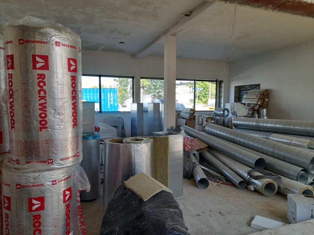 W lutym tego roku w ramach inwestycji zakończono roboty fundamentowe. W kolejnych miesiącach wzniesiono ściany. Segmenty parterowe zostały zakończone i budowlańcy przystąpili do ułożenia konstrukcji drewnianej dachu i jego pokrycia. Równocześnie kontynuowane było układanie kanalizacji oraz całej infrastruktury podziemnej. Zamontowana została także ślusarka aluminiowa (okna, drzwi). W ten sposób ukończony został stan surowy zamknięty, co umożliwiło rozpoczęcie prac wewnątrz budynku. Wiosną br. prowadzone były roboty instalacyjne, sukcesywnie układano tynki na ścianach i sufitach, a na zewnątrz trwały roboty dociepleniowe. Również firma Węglokoks, która jest dostawcą energii cieplnej, wykonywała we własnym zakresie prace związane z doprowadzeniem sieci ciepłowniczej do budynku. Teraz roboty prowadzone są głównie wewnątrz budynków i potrwają jeszcze kilka miesięcy.