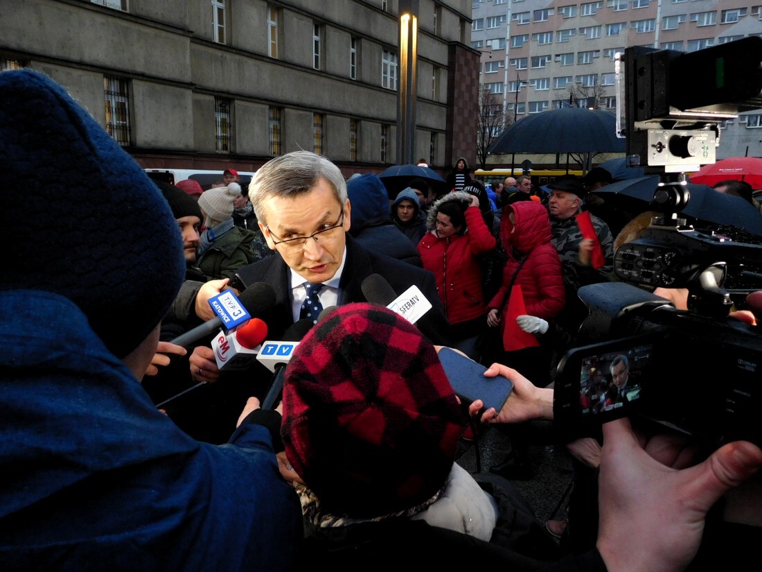 Chwilę później do protestujących wyszli przedstawiciele władz miasta – wiceprezydenci Krzysztof Mejer oraz Anna Krzysteczko, którzy starali się dziennikarzom i protestującym wytłumaczyć, skąd wynika tak trudna sytuacja finansowa miasta i dlaczego w budżecie nie zostały zabezpieczone większe środki na wsparcie dla sportowych klubów.