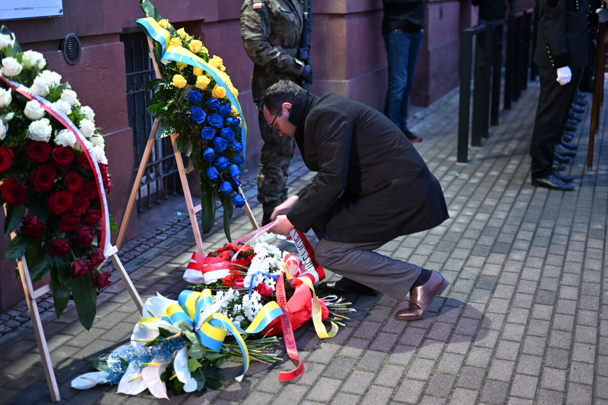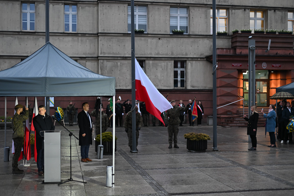 Na zakończenie uroczystości odsłonięto tablicę pamiątkową na fasadzie budynku Urzędu Miasta, poświęconą 80. rocznicy Tragedii Górnośląskiej.