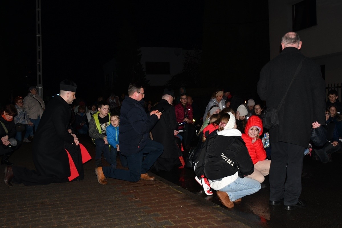 Chociaż pogoda nie sprzyjała, a w powietrzu unosiła się nieprzyjemna mżawka, w żaden sposób nie przeszkodziło to wiernym w odtworzeniu męczeńskiej drogi Chrystusa.