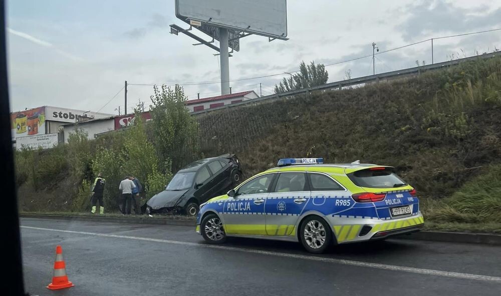 Trudne warunki dają się kierowcom we znaki. Dziś, 16 września, około godziny 6:45, na słynnym już "zakręcie mistrzów", na DTŚ w kierunku Gliwic, samochód wpadł w poślizg i wylądował poza jezdnią.