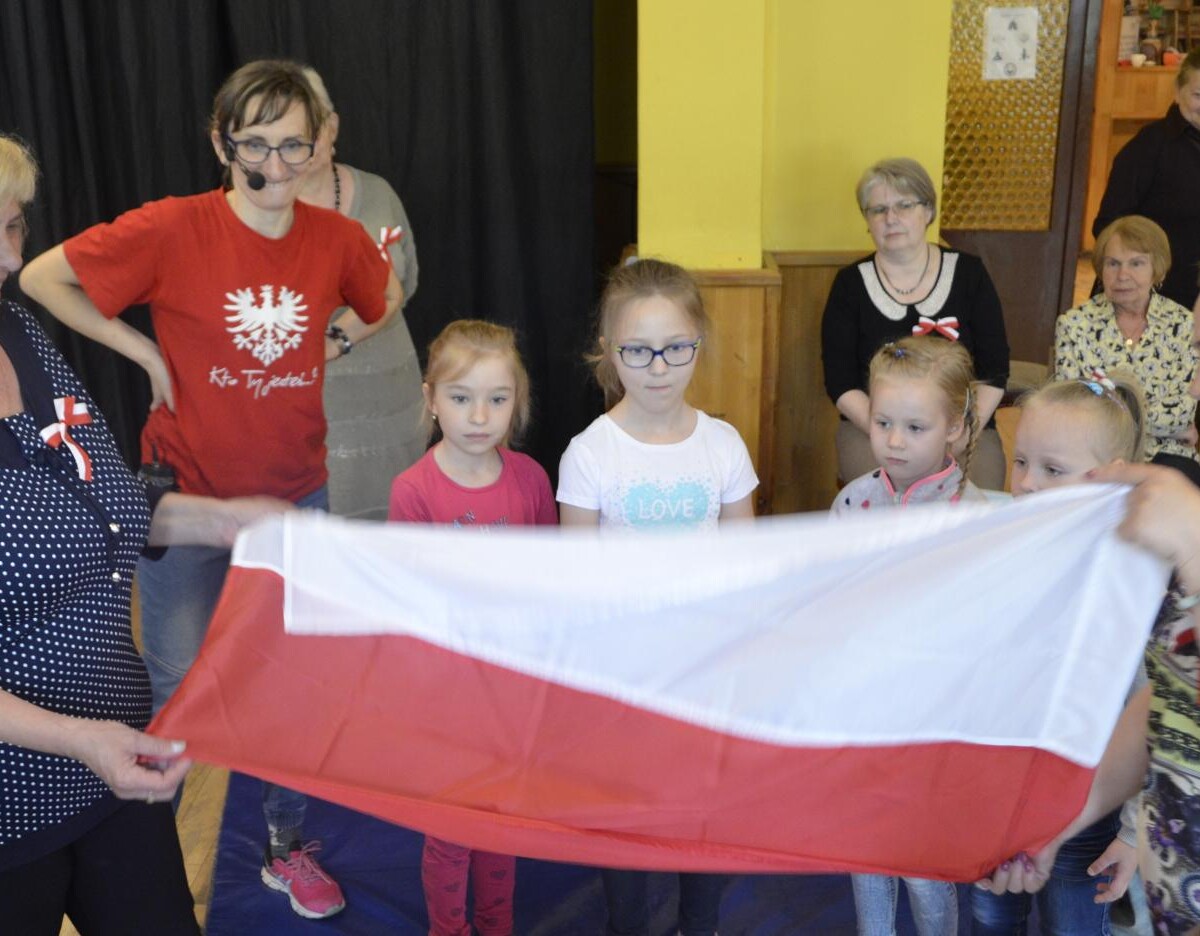 Dzięki wsparciu seniorów każde dziecko wykonało kokardę narodową, kolorowy magnes oraz pomponiki również w biało- czerwonym kolorze. Radość, uśmiech i zadowolenie zagościły na twarzach zarówno uczestniczących dzieci jak i seniorów. Został ogłoszony konkurs fotograficzny "Selfie z flagą". Zdjęcia można przysyłać do 15.05.2019. Zadanie zostało zrealizowane dzięki dotacji Funduszu Inicjatyw Obywatelskich.
